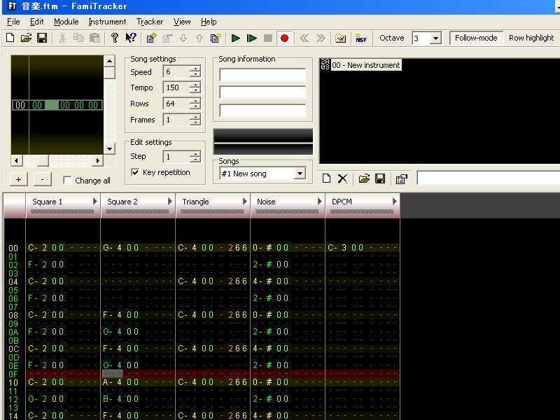 FamiTrackerで音楽を作っています。